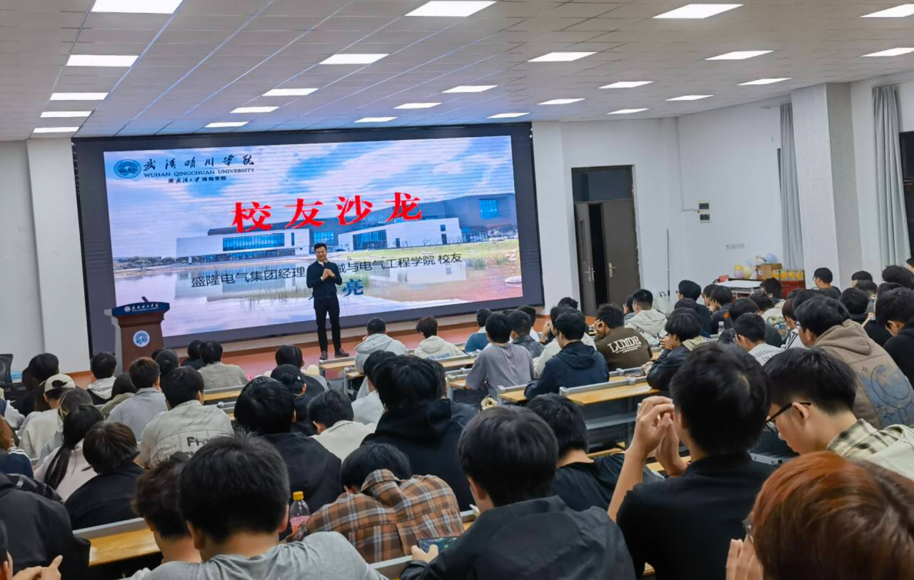 为让学生了解高新企业和专业前沿,明确学生专业学习目标和个人规划方向,树立正确的学习观,2025年11月7日晚在综二105,机械与电气工程学院特邀盛隆电气集团经理、2009级校友万亮,面向学院2024级学生开展了以《破局领航:电气青年的奋斗坐标》为主题的沙龙活动。本次活动由学院党总支书记张丽芳主持,辅导员段芳参加了活动。