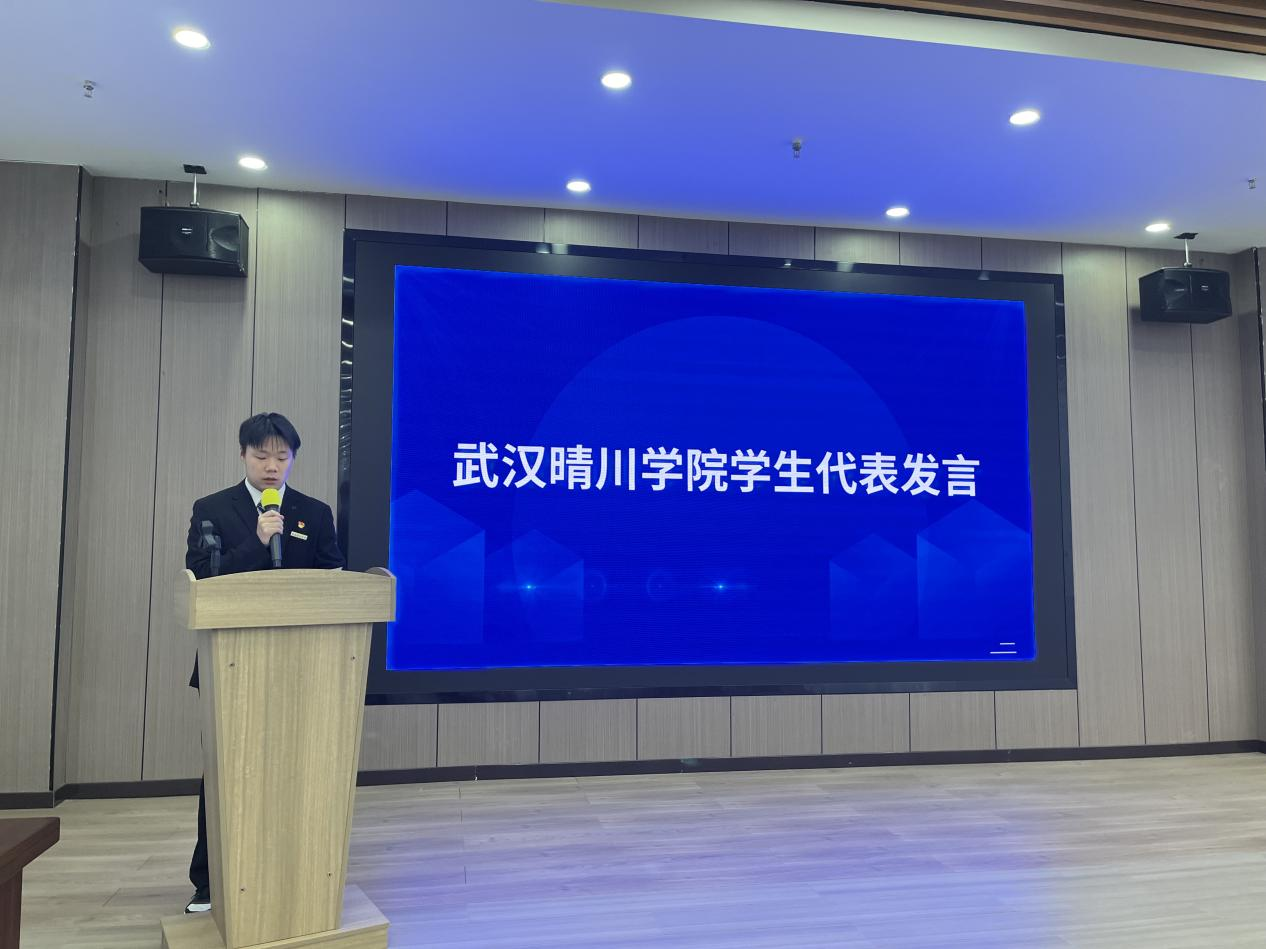 机械与电气工程学院赵枫同学作为学生代表在启动仪式上发言。他感谢学校和钟祥市政府提供的难得机会,期待能在本次活动中充分感受钟祥的独特魅力,他说,钟祥不仅有令人沉醉的历史韵味,更有极具吸引力的就业龙头企业。他期待能够深入钟祥的优秀企业,走进企业的生产一线,去亲身体验现代化的生产流程;与各行各业的前辈们面对面交流,聆听“工程师”们的经验与故事,用自己的所学,以自己的专业技能为钟祥发展贡献自己的微博力量。