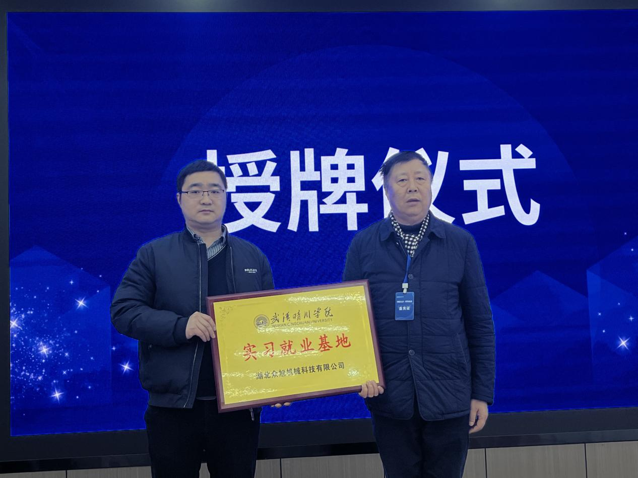 启动仪式上,武汉晴川学院副校长张克华同志为湖北新视野机床产业园有限公司、湖北众旭机械科技有限公司授牌“实习就业基地”,标志着双方正式达成了校企合作意向。
