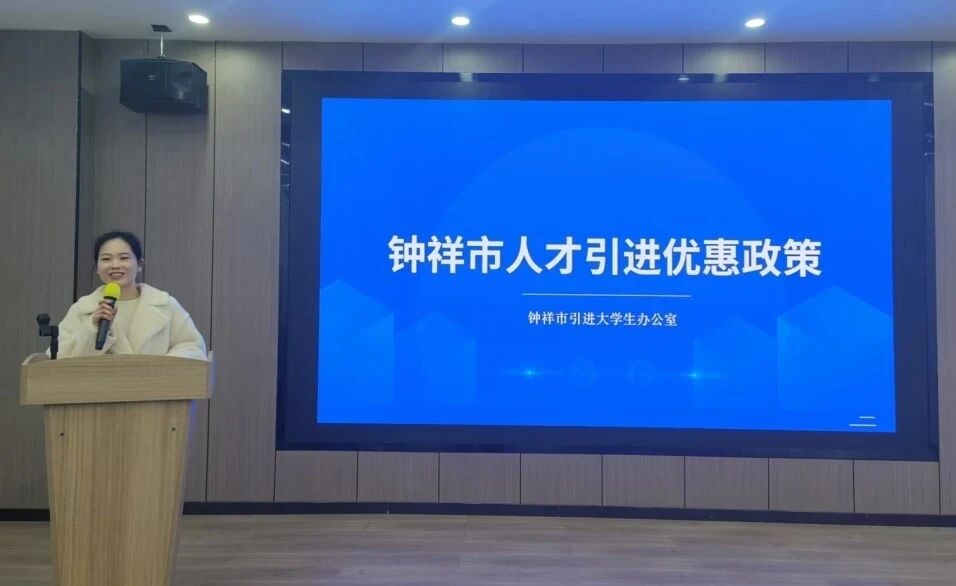 会上,钟祥市大学生引进办公室董美主任向学校领导、老师和同学们详细解读了《钟祥市引进人才的五条意见》《钟祥市推动科技创新助力争创百强人才激励若干政策措施》等钟祥市在就业、创新创业、住房购房补贴等人才引进方面的优厚政策。会上,相关企业也对自己的公司情况及岗位需求进行了详细介绍。