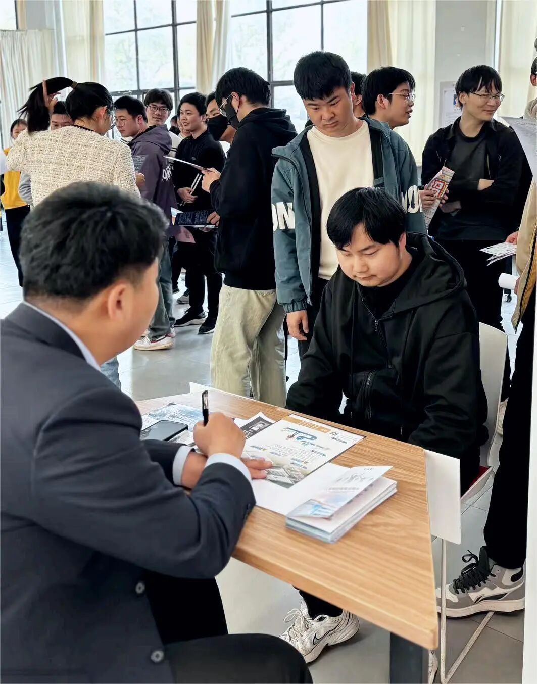 招聘会现场气氛热烈,毕业生们手持简历,积极与企业招聘代表交流,了解岗位需求及职业发展前景。不少企业表示,晴川学院学生专业基础扎实、实践能力强,与行业需求高度契合。人本股份HR负责人表示:“我们已连续多年参与该校招聘会,毕业生在项目实战和创新能力上表现突出,期待吸纳更多优秀人才。”