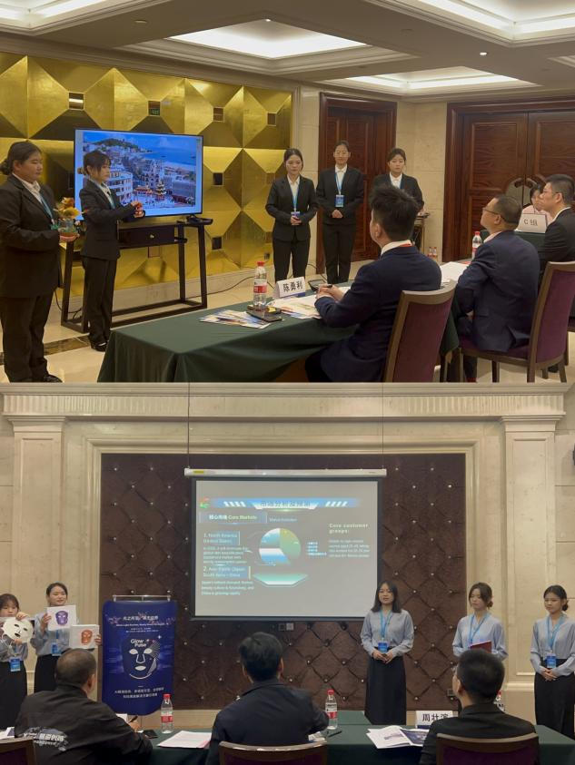 在备赛阶段,武汉晴川学院外国语学院精心筹备,从知识赛、省赛、全国总决赛,再到精英赛,一路披荆斩棘,展现出老师们深厚的专业素养与卓越的创新能力。两支队伍在老师们的指导下,不断优化选品方案与PPT,并进行多次线下演练,不断调整讲解话术,优化双语表达,同学们也在长期的相处中结下了深厚的情谊。