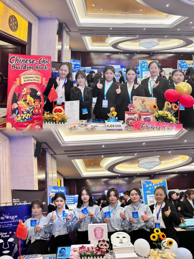 精英赛的另一环节是选品展洽会,在展洽会上,两支队伍以选品策划为蓝本,搭建创意展位。通过专业的产品讲解,向评审专家展示选品的优势和市场前景,均获得全国精英赛(展洽会)一等奖的好成绩。